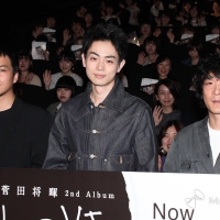 アルバムの発売日でもあったこの日。その前日、渋谷のタワーレコードで自身の作品を買ったという菅田。「フライングゲットしてきました。ひゅーいくんを筆頭に、プライベートの付き合いから発展というか。出逢いでアルバムが出来たりもしたので、発売される瞬間を見たいなと思っていたので見れて良かった。並んでいるお客さんやポップを書いてくれた従業員の方とか、ちゃんと自分で見ることが大事というか、ぬくもりを感じられて、曲を聴いて下さった方の反応があってありがたい」と語った。