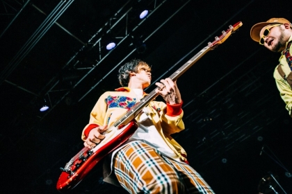 さて、ライブも中盤というところでオーディエンスが加わるクイズコーナーへ入った。まず、フレンズはメンバー中3人がベーシストであるということを明かす。ガチのベーシストメンバー長島涼平(Ba)のほか、えみそん、ひろせもベーシストなのである。