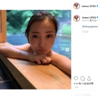 板野友美がプライベート写真を公開。なかには温泉の湯船に浸かる姿もあり、ファンを喜ばせている。