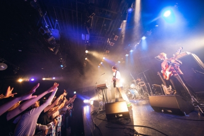 ライブは後半戦へと流れた。「冒険に出かけてもいいですか?」と投げかけメジャーデビューシングルの「MONSTER WORLD」で会場は大きな盛り上がりをみせ、「今度は声出してみようか」と提案すれば、イントロからシンガロングが響き渡る「レジスタンス」へ。今のバンドの勢いが感じられるグルーヴに、フロアもヒートアップしていく。