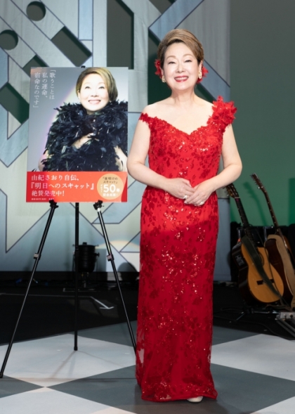 15分の休憩を挟み、第2部では情熱的な真っ赤なドレスで登場。第2部はカバーソングを中心に展開。まずは34年間、姉の安田祥子と続けて来た童謡を「季節のメドレー(夏Ver.)」と題して「我は海の子」などメドレーで披露。由紀の歌手としてのもう一つの側面、再現芸術の素晴らしさ、母性を感じさせてくれる歌声でサンプラザを優しく包み込んだ。