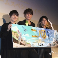 声優の宮野真守、梶裕貴、津田健次郎が6日、都内でおこなわれた映画『二ノ国』(23日公開)の「声優ドリームチームスペシャルイベント」に登場。同作で声優初挑戦となった、俳優の山崎賢人、新田真剣佑、永野芽郁の3人について宮野は「もともとの自力が凄いんだなということを感じましたね」と絶賛した。