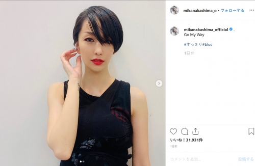 ロングヘアを黒髪ショートに一新した中島美嘉(Instagramより@mikanakashima_official)