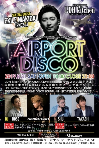 EXILE MAKIDAIが8月31日に、Live & Restaurant LDH kitchen THE TOKYO HANEDAで開催されるDISCOイベント『LDH kitchen THE HANEDA×MAHARAJA Roppongi presents AIRPORT DISCO』にスペシャルゲストとして出演する。