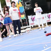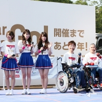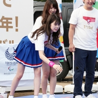 AKB48チーム8の岡部麟、吉川七瀬、大西桃香が25日、東京・代々木公園で開催された『東京2020パラリンピック1年前カウントダウンイベント ~みんなのスポーツ×ファンフェスティバル~』で、KREVAとともに、ボッチャを体験した。