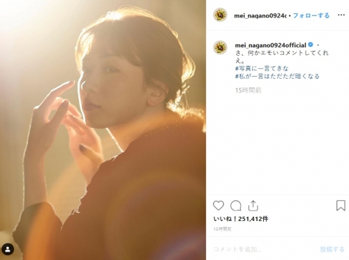 フォトニュース 「エモさ」求める永野芽郁(写真) あなたもコメントしてみては? 永野芽郁が一言コメントを求めた自身の写真(Instagramより@mei_nagano0924official) みんなの意見は?コメントを見る 関連写真・動画 この投稿をInstagramで見る ・ さ、何かエモいコメントしてくれえ。 #写真に一言てきな #私が一言はただただ暗くなる 永野芽郁さん(@mei_nagano0924official)がシェアした投稿 - 2019年 8月月28日午前12時03分PDT 写真一覧 みんなのコメント コメントを書く(ユーザー登録不要) この写真の記事を読む永野芽郁「何かエモいコメントしてくれえ」、“写真で一言”3700件超え