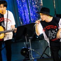 旅の最終地点となった上野の会場は、滝状に吊るされた数々の銀テープが照明を反射し、風流な夏の清涼を感じさせるステージ。オーディエンスからの温かい拍手のなか、吉田山田の2人は笑顔で姿を現した。