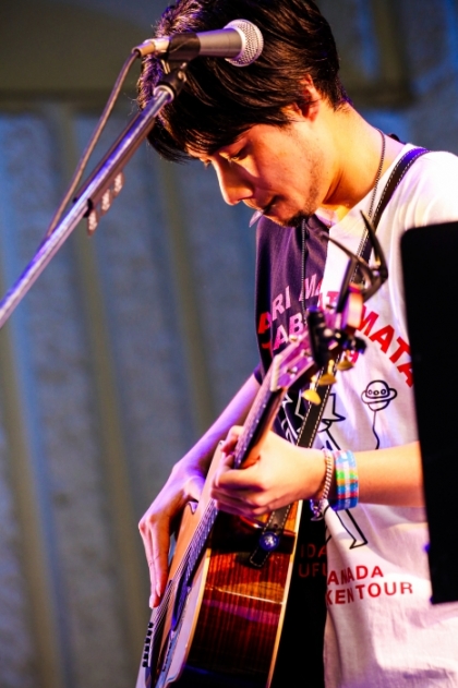 ライブの始まりは吉田結威(Gt, Vo)の奏でるアコースティックギターのゆったりとしたアルペジオから。吉田が奏でる手を止めると、山田義孝(Vo)はアカペラを披露した。山田の伸びやかな歌声が水上音楽堂の独特の響きで広がると、オーディエンスは拍手喝采、総立ちで応えた。