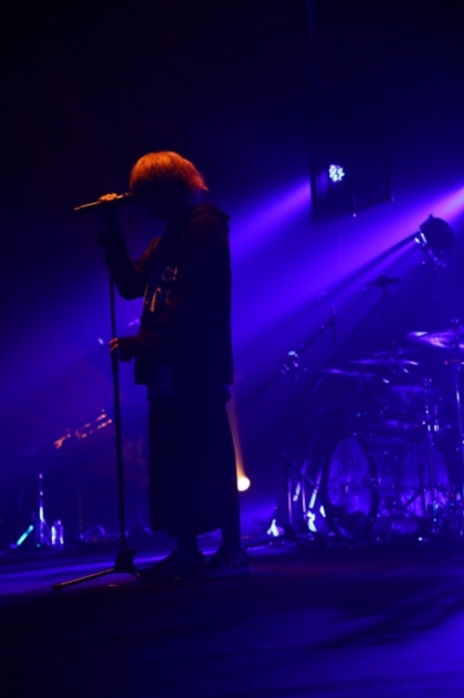 ライブも中盤戦。ここから場面転換し、おしゃれなミディアムナンバー「flos」を披露。マイクスタンドを使用し、歌を重視したスタイルは歌い手としての矜持を感じさせ、丁寧に時に熱く歌い上げていく。そこから「いかないで 」や「ハレハレヤ」、「鯰(ナマズ) 」を披露し。天井から吊り下げられた短冊形のLEDパネルには歌詞が投影され、言葉の意味を音だけではなく視覚でも伝えていく。