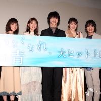 横浜流星、飯豊まりえ、矢作穂香、松岡広大、松本妃代、中村里帆、柳明菜監督が6日、都内でおこなわれた、映画『いなくなれ、群青』初日舞台挨拶に登壇した。