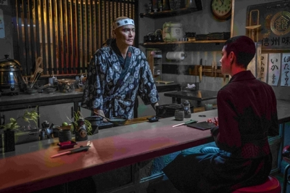 今回解禁された本編映像は、主席連合から派遣された冷酷な裁定人(エイジア・ケイト・ディロン)が、ジョン・ウィックを確実に抹殺するべく最強のニンジャ軍団に暗殺を依頼するシーン。土砂降りのなか、裁定人が訪れたのはNYの片隅に佇む寿司屋<平家>。和服に身を包んだ寿司職人たちが「いらっしゃいませ~! 何にします?」と威勢よく挨拶すると、裁定人は無表情で主席連合の証であるコインを差し出す。すると「こんなに早く来るとは」と職人たちが表情を一変。なんと彼らは、表の顔は寿司職人、裏の顔は板長でもある最強の暗殺者・ゼロ(マーク・ダカスコス)が率いる最強のニンジャ軍団だった。