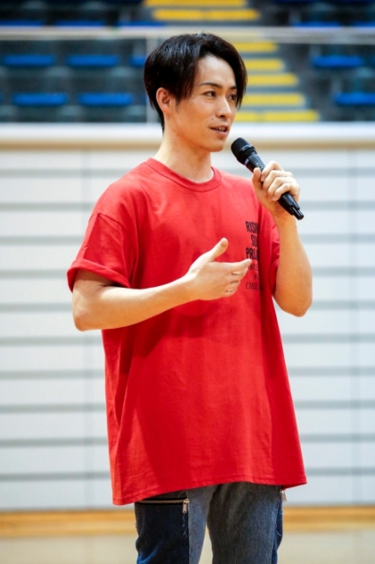 本番直前には、メンバーと生徒たち全員で記念撮影。さらに、USAの「今日はみんなで心をひとつに、最高のパフォーマンスにしましょう。いくぞ!」という掛け声で円陣、気合い入れを行ない、ステージへと向かう。「Rising Sun」が流れると、迫力あるダイナミックなパフォーマンスがスタート。EXILE TRIBメンバーとともに、後ろで踊る生徒たちの方を振り返り、時に笑顔を見せながらダンスを披露。全員が笑顔で練習の成果を発揮し、最後には大きな拍手とともに会場を後にした。
