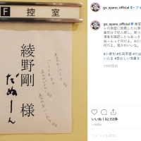 11日に自身のインスタグラムを更新した綾野。「番宣の為、日テレの楽屋に到着したら落書き」と切り出し、“綾野剛 様”と書かれた楽屋の表札に落書きされた画像をアップした。