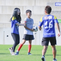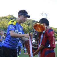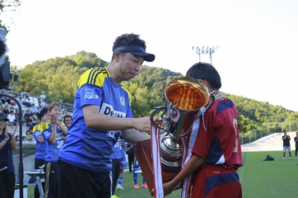 フレンドリーマッチ後に行われた囲み取材でUSAは、「夢を持って頑張っている子ども達が本気でボールを追いかける姿や涙、笑顔に心がグッと来ました。これからも子ども達が夢を持てる場を継続して作っていきたいなと思います」と10回目の大会で改めて感じた手応えを述べる。ラモス瑠偉氏は「今年は上手なキーパーが増えた。それを見ていると嬉しいね」と子どもたちが日本代表選手として活躍する未来に期待を込めた。さらに、ラモス瑠偉氏は閉会式でも有望なキーパーの話題に触れ、宝塚CABO夢チャレンジのキーパーを始めとしたお墨付きの選手2名に直接ユニフォームを手渡し、夢のバトンを繋いだ。