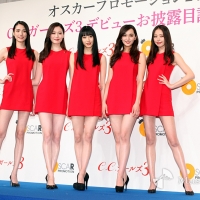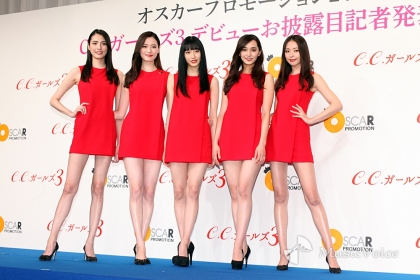 河北麻友子と武井咲を両サイドに撮影に応じた3代目C.C.ガールズ