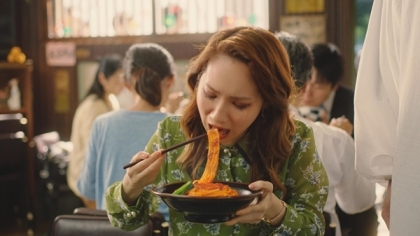 「ハイ、どいて! どいて~」と、お母さん食堂を切り盛りする慎吾母。優しい笑顔で料理を運ぶその姿は、正に現代人にとっての癒し。そんな慎吾母がふと目を移すと、失恋の悲しみに暮れる一人の女性の姿が。そんな彼女を見かねた慎吾母は、彼女の前にすっと汁なし担々麺を差し出し、「失恋なんて、美味しいもの食べれば忘れるわよ」と言葉をそえ優しく微笑む。すると女性は、担々麺の美味しさと、秘められた母の優しさをかみしめながら感動の涙を流す――。