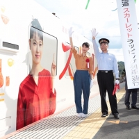 戸田恵梨香が29日、ヒロインを務める、NHK朝の連続テレビ小説『スカーレット』(9月30日スタート)の舞台、滋賀県甲賀市の信楽高原鐵道信楽駅でおこなわれた『スカーレットラッピング列車 出発式』に出席した。
