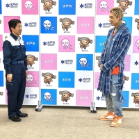 この日、茨城県水戸市役所を訪れ、高橋靖市長に見舞金を手渡したt-Aceは「一刻も早く被災した水戸の皆様に届くよう市長に直接お届けに来ました」と述べ、被災地の早期復興を願った。