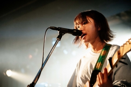 ここまでアップテンポで走らせたなか、ライブ中盤の「潮風通り」ではシャッフルビートで変化をつけ、「満ちる月」ではギターアルペジオでの弾き語りスタイルからの導入と、勢い一発のバンドではないことを示した。ミドルテンポの楽曲のなかでもダイナミズムの起伏を担うのはジョー&たけうちひよりのプレイ。ギター、ベース、ドラムという最低限の編成だからこそ丸裸になるアンサンブルは、土台となるベースとドラムがバッチリと支えていた。そして、そのなかでヤマシタカホは歌とギターを感情に乗せて飛散させるように堂々と、パフォーマンスを続けた。