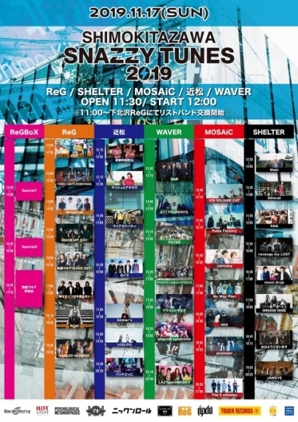 11月17日に下北沢のライヴハウス5会場(下北沢ReG / 下北沢SHELTER / 下北沢 MOSAiC / 下北沢近松 / 下北沢WAVER)にて開催されるサーキットイベント『SNAZZY TUNES』の最終出演アーティストが発表された。