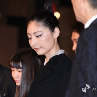 背中がぱっくりあいたエレガントな黒のドレスでレッドカーペットを歩いた常盤。ファンの声援やサインの求めにも笑顔で応えていた。