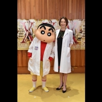 アフレコを終えた米倉のもとに、しんのすけが登場。米倉と同じ白衣姿で登場したしんのすけ。その裾をめくって見せると裏には「オラ、ぜ~んぶ成功しちゃうので」「御意」という、どこかで聞いたことがあるようなフレーズ。さらに胸に付けた名札には「ふりーらんす5歳児」「いたしません」の文字が書いてあるなど、しんのすけ流 “大門未知子コーデ”を披露した。