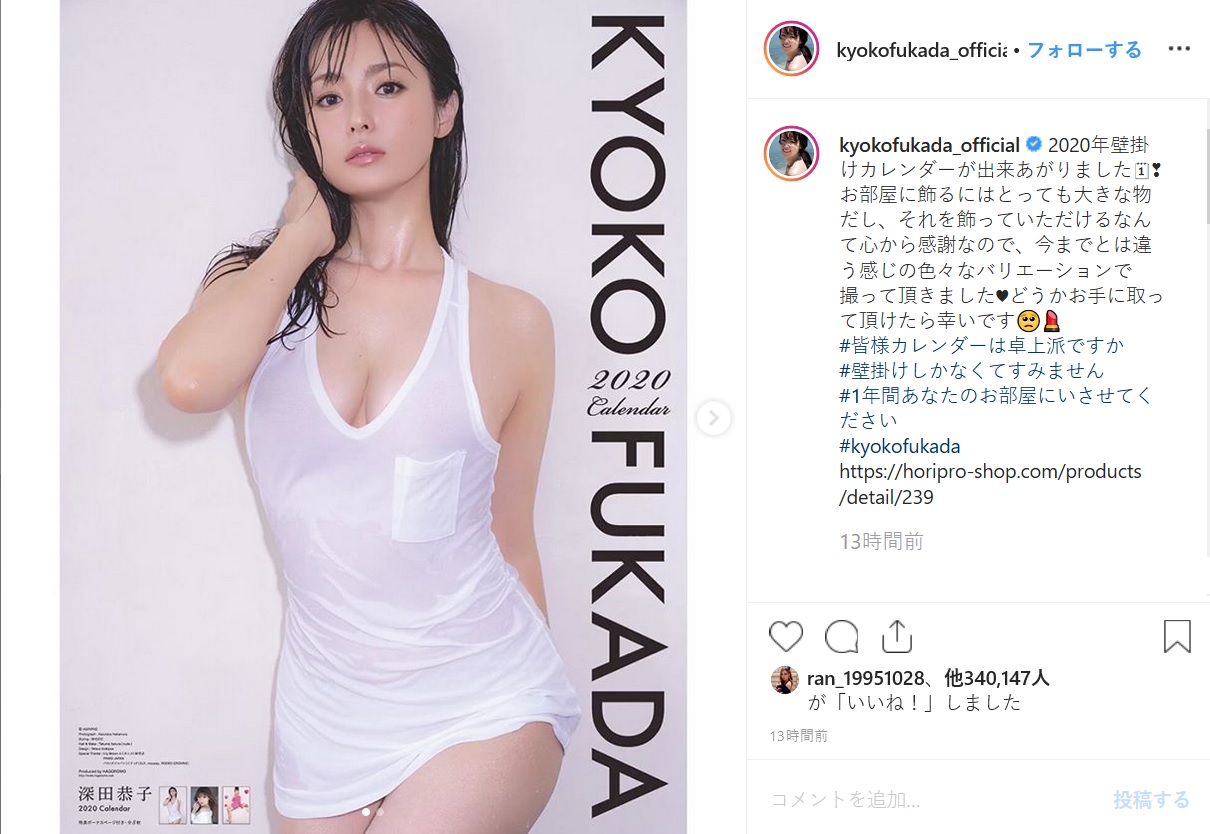 フォトニュース 深田恭子、色気たっぷりカレンダーが話題(写真) 「美しい」と話題になっている深田恭子がアップした2020年壁掛けカレンダー(Instagramより@kyokofukada_official) みんなの意見は?コメントを見る 関連写真・動画 この投稿をInstagramで見る 2020年壁掛けカレンダーが出来あがりました🗓❣️お部屋に飾るにはとっても大きな物だし、それを飾っていただけるなんて心から感謝なので、今までとは違う感じの色々なバリエーションで撮って頂きました♥️どうかお手に取って頂けたら幸いです🥺💄 #皆様カレンダーは卓上派ですか #壁掛けしかなくてすみません #1年間あなたのお部屋にいさせてください #kyokofukada https://horipro-shop.com/products/detail/239 深田恭子(@kyokofukada_official)がシェアした投稿 - 2019年10月月31日午前2時31分PDT 写真一覧 みんなのコメント コメントを書く(ユーザー登録不要) この写真の記事を読む濡れる深田恭子「あなたのお部屋にいさせて」色気のある大胆ショットが話題
