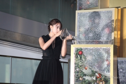 初日となったこの日、山本は黒いドレスに身を包み、階段を伝って登場。水槽に水を注ぎイルミネーションを点灯させた。