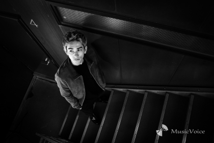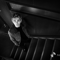 インタビューに入る前に撮影をおこなった。場所は階段だった。自然と選んだロケーションで、撮っている最中に階段を上がっている姿も撮りたいと思った。一段一段上がるその姿。今思えば、「一つ一つ一生懸命」という彼の性格にふさわしい写真になったと思える。知らず知らずのうちに彼から感じ取っていたのかもしれない。