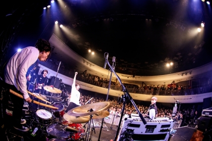 「須田くんが作ったカッコいい曲があります」と「サテライト」へ。ロックバンドのアグレッシブなアティチュードを感じさせるナンバーで、会場はバンドとオーディエンスの熱気で温度がどんどん上昇していくのがわかる。オーディエンスも腕を挙げ、バンドと一体感を作り出していく。そのエネルギーは辻のディストーションが効いたベースソロが印象的な「手の鳴る方へ」でさらにブースト。「ボヤッとしていると1部が終わっちゃうよ!」と煽り、「クレイジーガール」に突入。4人のテンションで迫りくるサウンドに、身体は否応なしに反応してしまう。