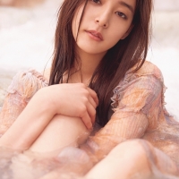 夕方に撮影された収録カット<1>のシーンでは、水着の上に、女性らしさ溢れるパステルカラーの、透け感がちょっぴりセクシーなフリルのチュニックを着た姿を披露し、写真は、水中から見え隠れする素肌と、まるで目の前にいるたった1人だけに注がれるような眼差しの艶っぽさが印象的な一枚となっている。