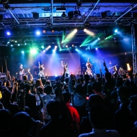 ここで、フロアの一体感をさらに高めてくれる「だいだらぼっち」へ。みんなで肩を組み、ビートに合わせ横に揺れ、絆を深めてくれるような瞬間は、クライマックスかのような感動的な空間を作り上げていた。この曲の聴きどころとして、アカペラで熱い歌を響かせる場面もあり、曲の締めはオーディエンスと一緒にジャンプで締めた。