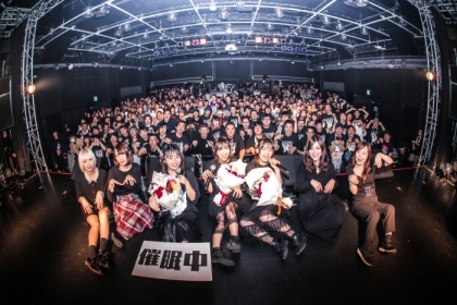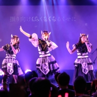 アンコールの声にTシャツに衣装をチェンジした3人と、バンドメンバー、そしてこの場に集まったオーディエンスと記念撮影。アンコール1曲目は3人で作詞し、本編でも披露された「ホラーかわいい」を再演。イントロや間奏では「セイ!」のコールで盛り上がり、アクティブな3人の振り付けと歌で、休む間も与えない怒涛の畳み掛けを見せた。