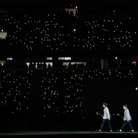明かりが落とされる場内。スタンドには観客による携帯電話の光が灯る。その光景はまるで夜空に浮かぶ星群のようだ。その中でゆずは歌い上げる。ゆずに集まる8つのスポットライトは桜の花びらのような形を作っていた。