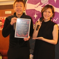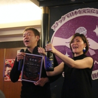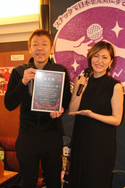 玉袋筋太郎は、“スナックで日本を元気にする”をコンセプトに「全日本スナック連盟」を立ち上げ、この「スナック玉ちゃん」を2017年にオープン。今回は、ママではないが、玉袋を“100人目のママ”として認定証を授与。玉袋が登場するとさっそくマイクを持ってステージへ。『KANAちゃん、お遍路の数を超えてスナック100店キャンペーン達成という事でおめでとうございます!』との一声で、お客さんから一斉に祝福のクラッカーでお祝いムード。客席からも「おめでとう~」の声もかけられた。