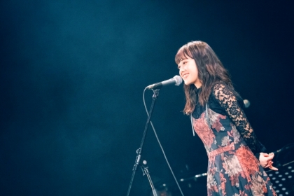2018年12月にリリースした『Acoustic CD [bottled-up]』からは、「眺めの空」と「クローバー」が演奏された。「クローバー」はCDではバラードだが、このステージではミディアムの少しジャズの雰囲気もあるサウンドにリアレンジ。胸の内側にくすぶる熱を、すべて吐き出すような歌声が印象的で、息を吸う音もこの曲を表現するための一部といった雰囲気。彼女の表現力の豊かさが感じられるパフォーマンスになった。「眺めの空」では、昨年10月に楠木ともり Official YouTube Channelで公開された同曲のリリックビデオがバックに映し出された。「作ってから時間が経ち、今歌えているのはすごくエモーショナルです」と彼女。淡い色調の絵に重ねて歌詞が映し出される映像も相まって、曲の持つ切なさが倍増して胸に響いてきた。
