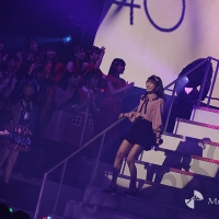2階ステージに3人の姿が登場すると歓声が鳴った。笑顔で歌う3人。松岡、田中、田島の順で階段を降りると、トロッコに乗ってアリーナを移動。手を振ってファンの声援に応えた。