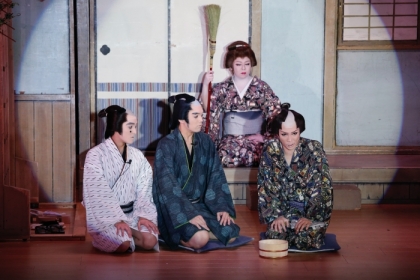 中盤からは一転してシリアスなシーンへ。着物から紋付袴へと着替えるシーンは無駄のない手さばき、勘当された家に戻ることへの決意を感じさせる見どころの一つだった。そして、DREAMS COME TRUEの「LOVE LOVE LOVE」や星野源の「恋」など要所に音楽が挿入され場面を盛り上げながら、後半では定次郎の実家である「越前屋」に本家の仁兵衛が登場。この仁兵衛がなかなかの曲者で、終始笑いを誘いながら、ストーリーは感動的なラストシーンへと紡がれていく。笑いあり、涙ありの芝居で約90分間を一気に駆け抜け1部を終了した。