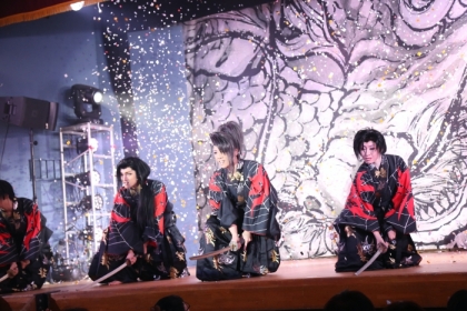 月間特別ゲストである劇団妃咲の座長・妃咲鐐による美麗な踊りや、ヴィジュアル系バンドのようなモダンな和装で魅了した紅大介、劇団美山座長・里美たかし、若座長・里美こうた、花形・里美京馬それぞれの個性が出たパフォーマンス。女形の流れるようなしぐさ、美しさは観客の目を奪い、観客も推しの演者が登場するとプレゼントを渡したりお花(おひねり)をつける。ステージと客席の境界線がなくなるような瞬間が何度もあった。