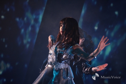 クラップ音から始まった「カモネギックス」では扇子を使っての妖艶なパフォーマンス。「水の中の伝導率」では上着を脱いでクールに決める。