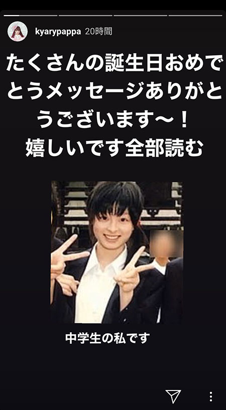 フォトニュース きゃりー、中学生時代の写真公開 好評を得ているきゃりーの中学生時代の写真(Instagramより@kyarypappa) みんなの意見は?コメントを見る 関連写真・動画 この投稿をInstagramで見る 今回のバースデーライブの衣装は PELIさんに製作して頂きました。大好きなPAMEOPOSEのアイテムも使いながらダンサーさんも可愛くしてもらいました〜! のんちゃんが描いてくれたペイントも素敵💙 きゃりーぱみゅぱみゅ(@kyarypappa)がシェアした投稿 - 2020年 1月月28日午後8時54分PST 写真一覧 みんなのコメント コメントを書く(ユーザー登録不要) この写真の記事を読むきゃりー「27歳」に、中学生時代の写真公開 「可愛い」の声