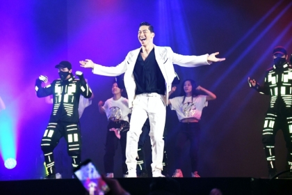 この日は「旧正月最後の日にたくさんのパワーを台湾の皆さんにお届けして、素敵な一年を送ってもらえたら嬉しい」と、初の海外校として2009年に開校した「EXPG STUDIO台北校」の生徒らとダンスパフォーマンスを披露。台北校のキッズダンサーやLEDのスーツを身にまとったLEDダンサーらと、EXILEの「Heads or Tails」や「STYLE of 24karats」などをパフォーマンス。子どもたちのダンススキルや、音楽に合わせて何色にも発光するLEDの光の演出に観客は釘付けとなった。AKIRAは「光の祭典ということで、夢に向かって頑張っている子どもたちに『光』や『希望』をお届けできたら」と演出に思いを込めた。MCからAKIRAと一緒にパフォーマンスをした感想を聞かれた小学5年生のキッズダンサーは、満面の笑みを浮かべながら「とても楽しかったですし、達成感でいっぱいです。そしてAKIRAさんの踊りを見てとても勉強になりました!」と喜んだ。