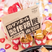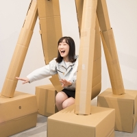 段ボールを使って様々なアートを手掛ける南。ネット番組『新YNN NMB48 CHANNEL』の人気コーナー『南ダンボール製作所』で作った作品を展示する。