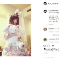 二階堂がアップしたのは、白色を基調にフリルなど“ロリータファッション”で身を固めた自身の姿。前髪はきれいな“ぱっつん”で、大きな人形を抱き、頭には大きなウサギのリボンも付けている。