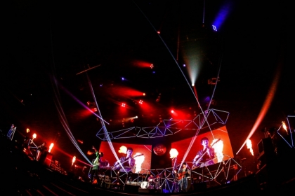 自信に満ちた健司の意気込みから、本編ラストに届けられたのは「イマジネーション」。ズッシリと体に響くサウンドに、エモーショナルなら健司の歌声。フレデリックの意思がビンビン伝わってくる、想像力を掻き立てるパフォーマンス。特効のフレイムボールがガンガンステージで上がる中、健司は「もっともっと音楽を愛してもらいたい」と、メッセージを発しながら、アリーナの客席後方まで自らの足で回る。メインステージに戻ると、張り裂けんばかりの声で「イマジネーション」を歌い上げ、ステージを後にした。