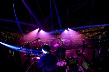 三原健司(Vo、Gt)の声がアリーナに響き、SEのなか、暗闇のステージに4人が登場。暗闇のステージに4人が登場。オープニングを飾ったのは、神戸 ワールド記念ホール公演でアンコール最後の曲として演奏された「飄々とエモーション」。あの場所からの続きを感じさせる幕開けだった。スクリーンには歌詞が飛び交うように投影。エネルギッシュで伸びやかな健司の声がアリーナに響き渡る。それに呼応するオーディエンスのシンガロングは、序盤からクライマックスのような空気感を打ち出していた。