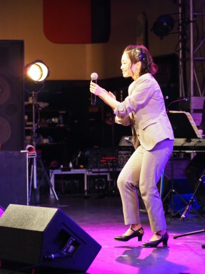 「今日でしか生まれないグルーヴ感、みんなで一緒に紡いで行きましょう」と投げかけ、ギターとサックスの伴奏で平野愛子の「港が見える丘」を届けた。イントロから池村真理野のサックスによる哀愁のあるムーディーな演奏でグッと世界観に引き込まれていく。