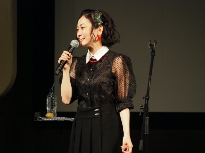 ここからは赤いワンピースに衣装を変え、オリジナルソングメドレーを披露。まずはデビュー曲「ゆれて遠花火」、カラオケファンに知ってもらう一曲になった「雨おんな」、盛り上がる一曲で観客による“あいちゃんコール”も巻き起こった「ひとりにさせないで」、しっとりとした「最後の頁」を観客に語りかけるように歌い上げ、メドレー最後は鹿児島の風を届けた「薩摩めぐり」。ゆらゆらと心地よいリズムは、レイドバックした空間を作り上げ、西田の魅力をギュッと凝縮したコーナーだった。