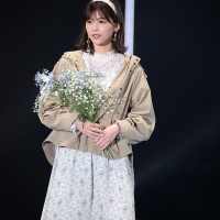 「earth music&ecology」のステージに登場した渡邉。淡い花柄のワンピースにカチューシャを付けて登場。春の訪れを感じさせる爽やかなランウェイとなった。