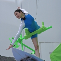 今回のCMで、菜々緒は3つのポージングに挑戦した。まずは、フィギュアスケートのスパイラル(片足を腰より高い位置に上げた状態で滑ること)を彷彿とさせるポージングから撮影開始です。監督の指示は「堂々と、体のどこにも力が入っていない感じで」というものだったが、姿勢をキープすることはおろか、その場で立つことすら難しいだけに、菜々緒も「このポーズを氷の上でやるなんて凄いですね」と呟きながら、お手本となるイメージ写真と自らの姿が映るモニター画面を真剣な表情で見比べていた。